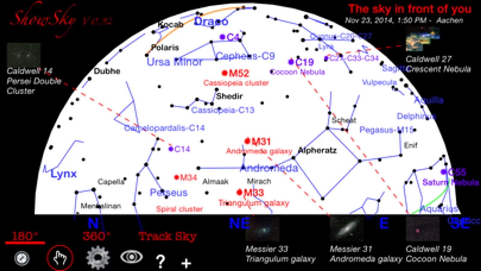 ShowSky is an astronomy app for everyone. It is designed to let you easily understand and learn the sky in front of you. It gives you a complete view including stars, constellations and deep space objets including photos.
