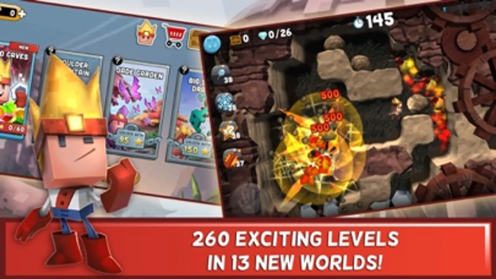 Gem Collectors, Dig This! Boulder Dash®-30th Anniversary™ finds our heroes, Rockford™, Crystal™ and others, facing a slew of new, exciting challenges in this legendary action puzzler. Dig through spectacular caves with 3D elements; avoid falling boulders; collect valuable gems and avoid nefarious enemies along the way. Discover treasure chests with rare collectibles and potent power-ups. With 260 exciting levels, 13 new, gorgeous worlds, and 10 playable characters, Boulder Dash-30th Anniversary is the best game in its 30 year history.