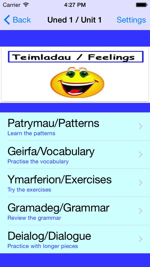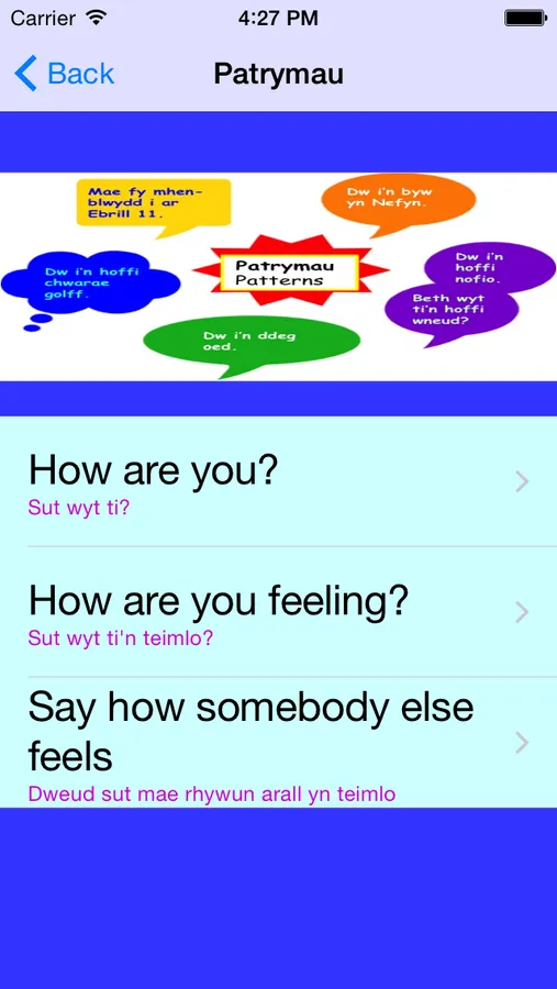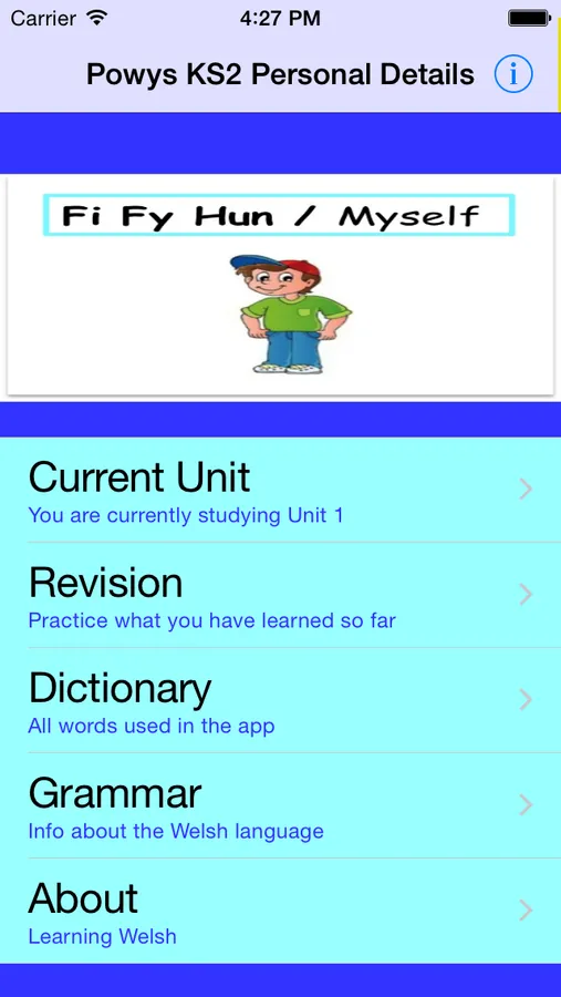 This App provides lessons teaching school pupils how to talk about themselves and their interests in Welsh.
