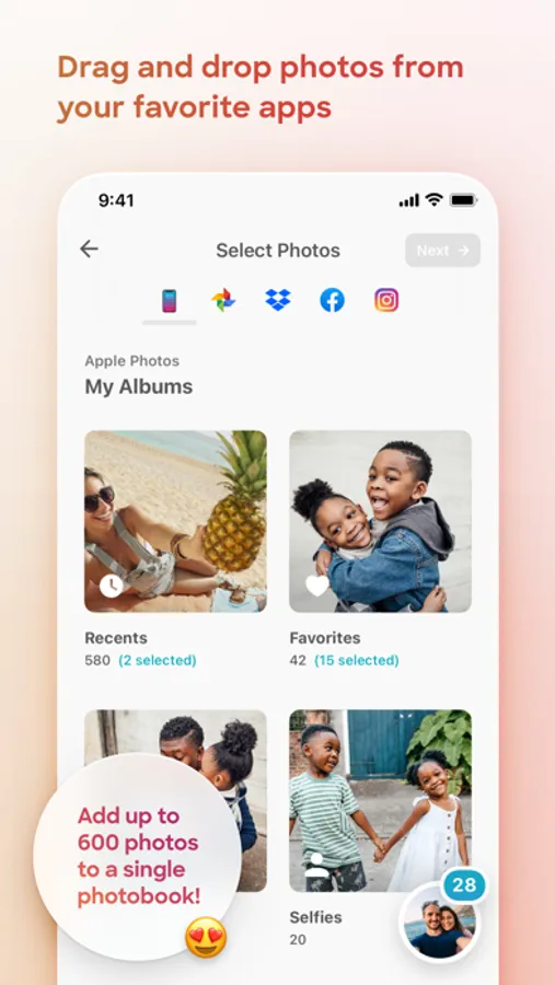 Once you’ve picked your photos, our super-fast app creates your layout automatically. It does it all: