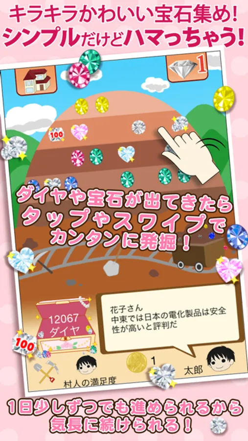 「毎日、楽しく指先スワイプでダイヤ発掘、健康ヘルスケア!」