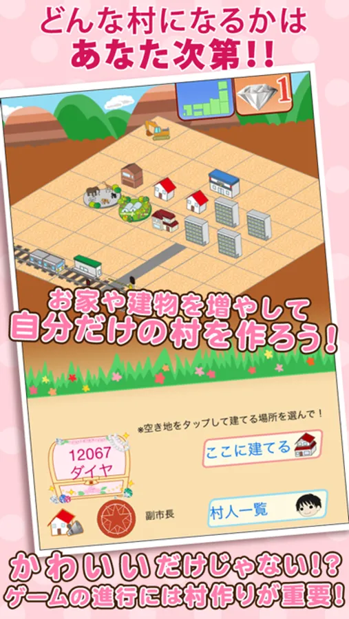 毎日ダイヤを集めると、家族や村人がたくさん増えていきます!