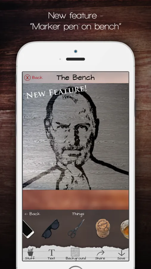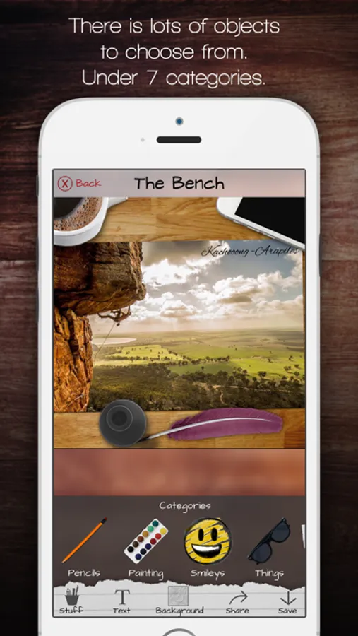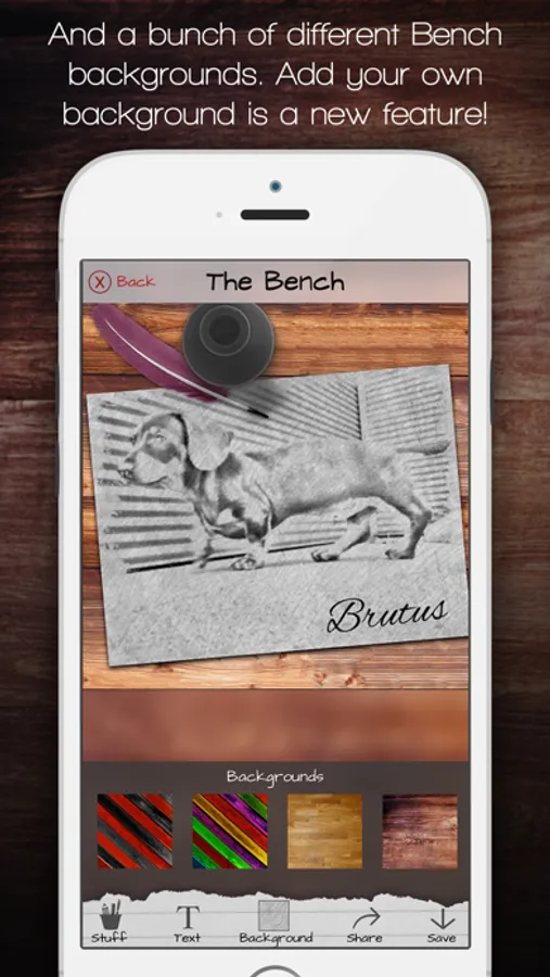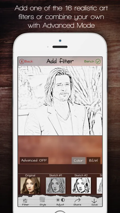 Begin by choosing one of the custom filters from the huge selection that you want. Then take your photo to The Bench, select the pen or paint bucket, and watch as your photo emerges as a work of art! It looks like you drew or painted it, and then took a photo! Move the photo around as you wish to give it that unique look that emulates a hand drawn feeling.