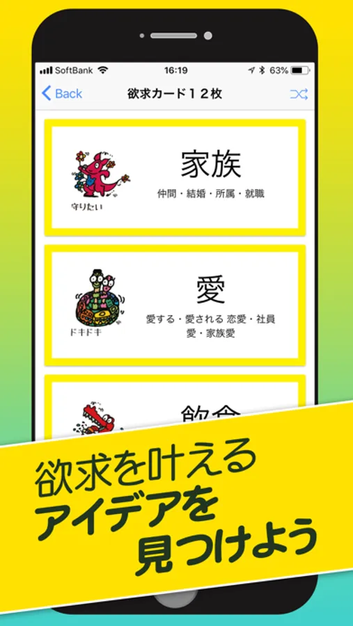 ▪欲求カードで叶えたいアイデアを可視化しましょう。
