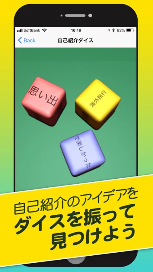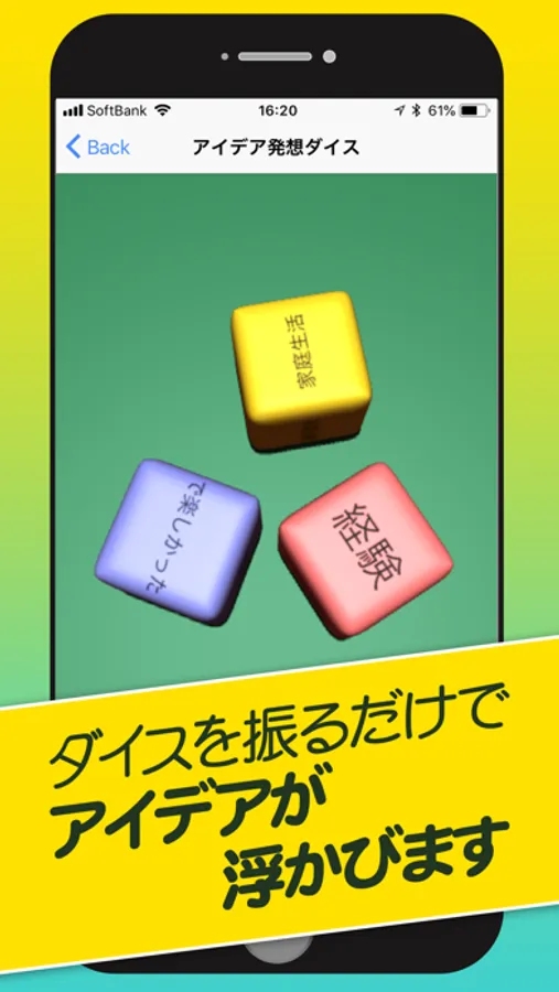▪アプリ内にあるダイスを転がして、出た目の組み合わせを見るだけで、