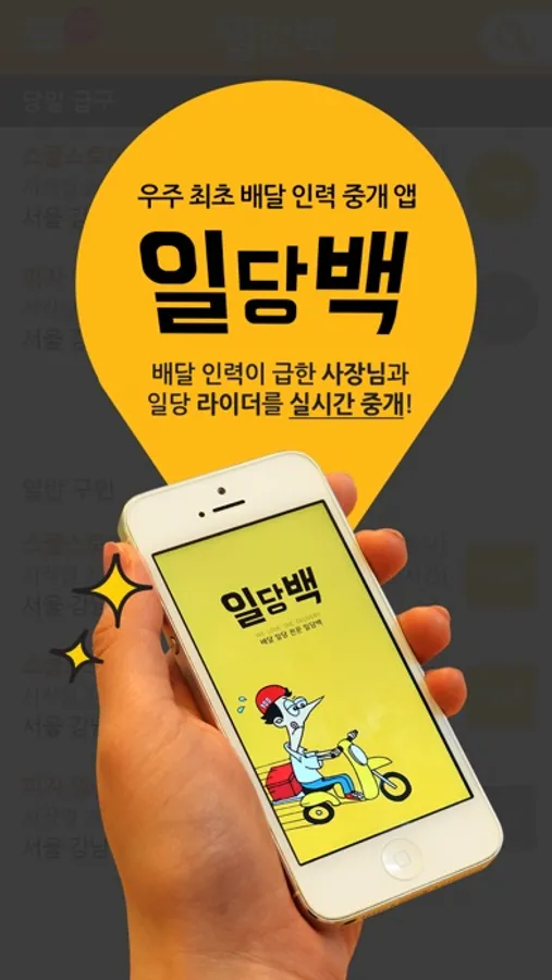 일당백을 통해 배달업소는 빠르게 배달일당을 구하고 라이더는 원하는 일정에