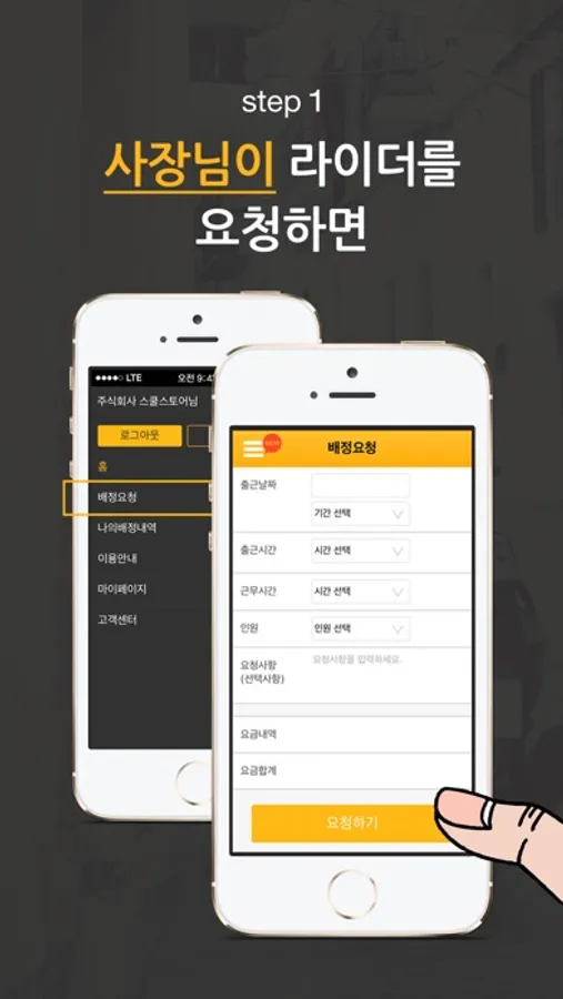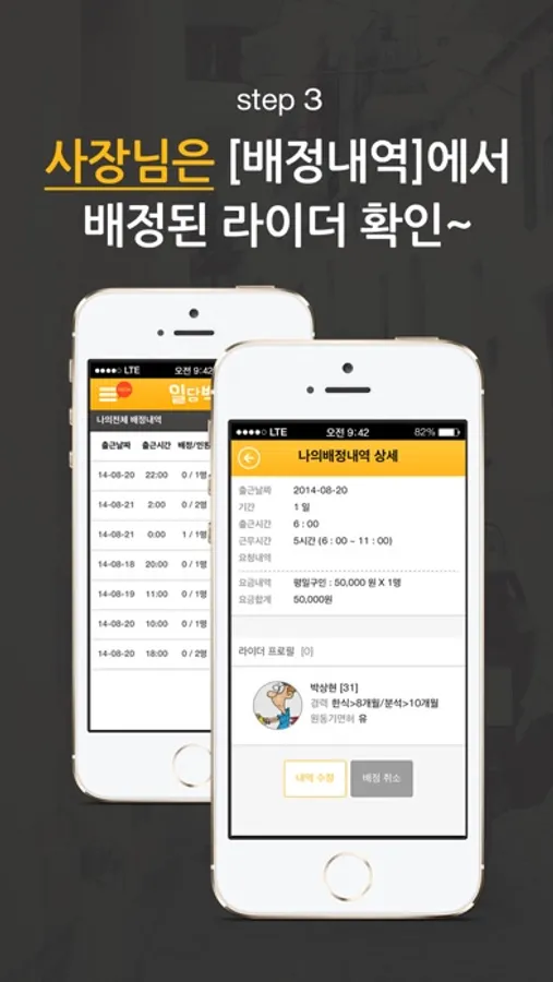 일을 배정받아 근무하는 구조로 스마트폰 앱을 통해