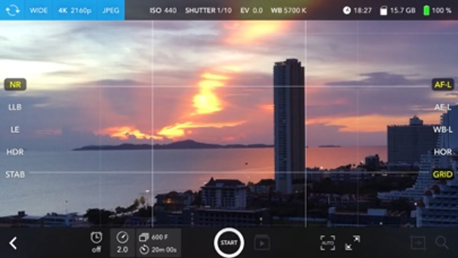 It has many options, such as choise of shooting resolution and format, motion blur and light trails effects, HDR, panning motion and more.