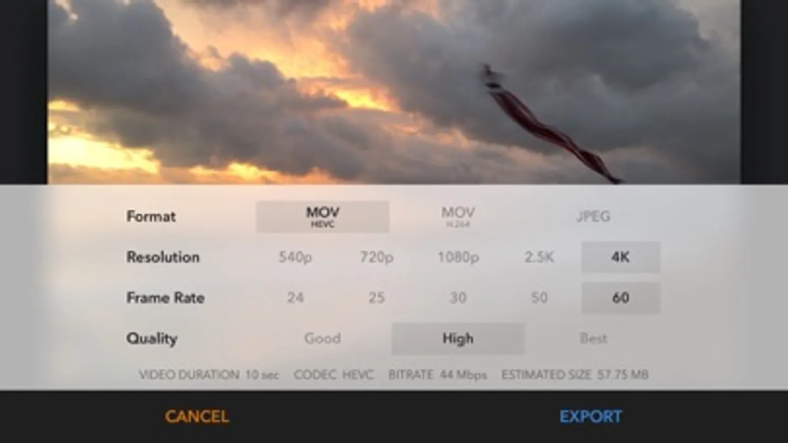 • Convenient and understandable export settings with the choice of resolution, format, video frame rate and quality