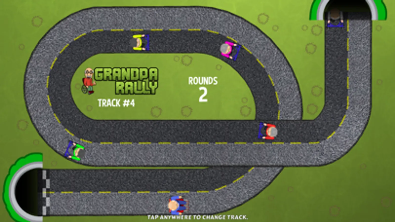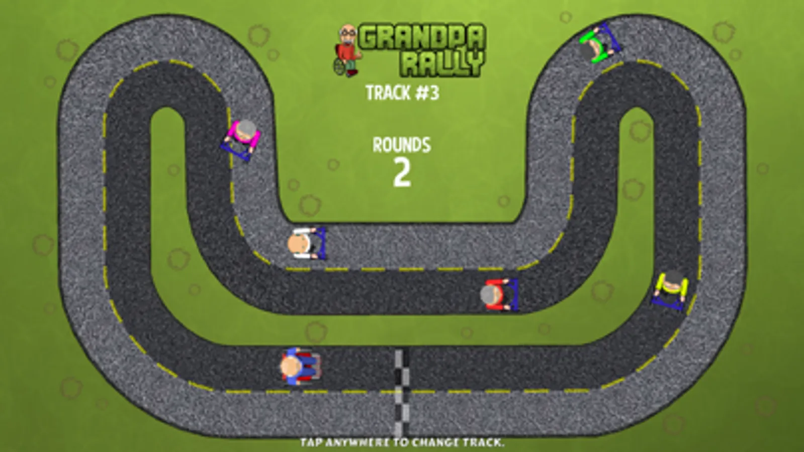 Help crazy grandpa in this rally game! Grandpa Rally goal is simple swap tracks and do not crash into other grandpa's. Try to run as many laps you can.