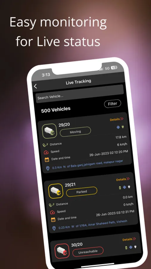 This app gives provision to user to see/check their vehicle status like their vehicle locations on map with their status(moving, parked etc.).Users can also see their vehicles details like speed, distance, location etc and also see their respective locations.
