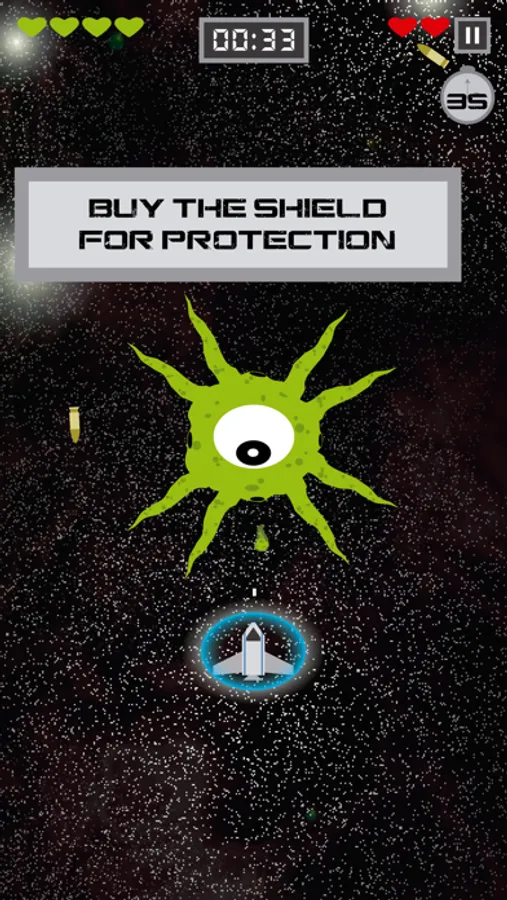 Tilt your device to change your spaceship direction and escape from the monster's shots.