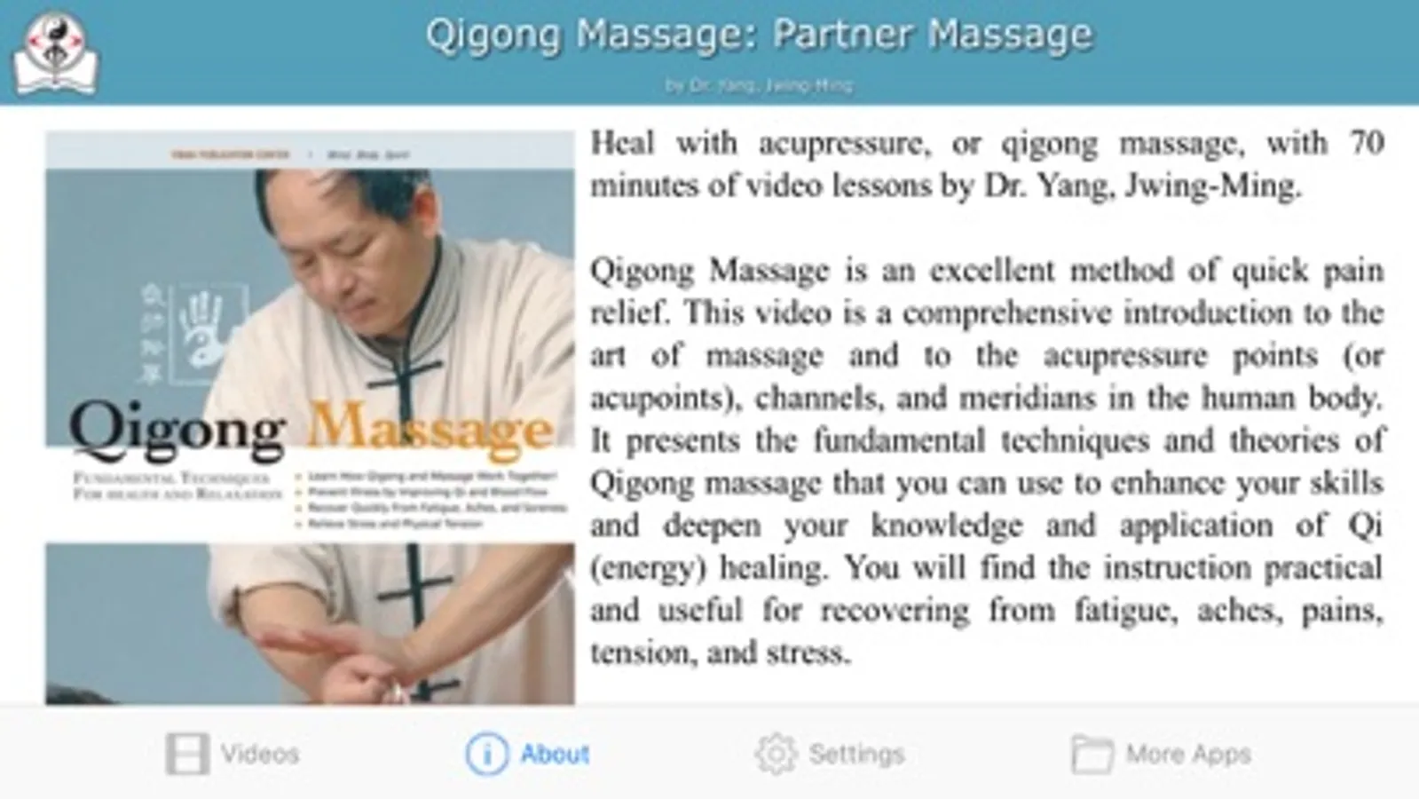 Same video lessons as the DVD for much less! Learn acupressure, or qigong massage, with two hours of video lessons by Dr. Yang. This app is available for free download with sample videos, and offers a single in-app purchase to access these massage lessons for the lowest possible cost.
