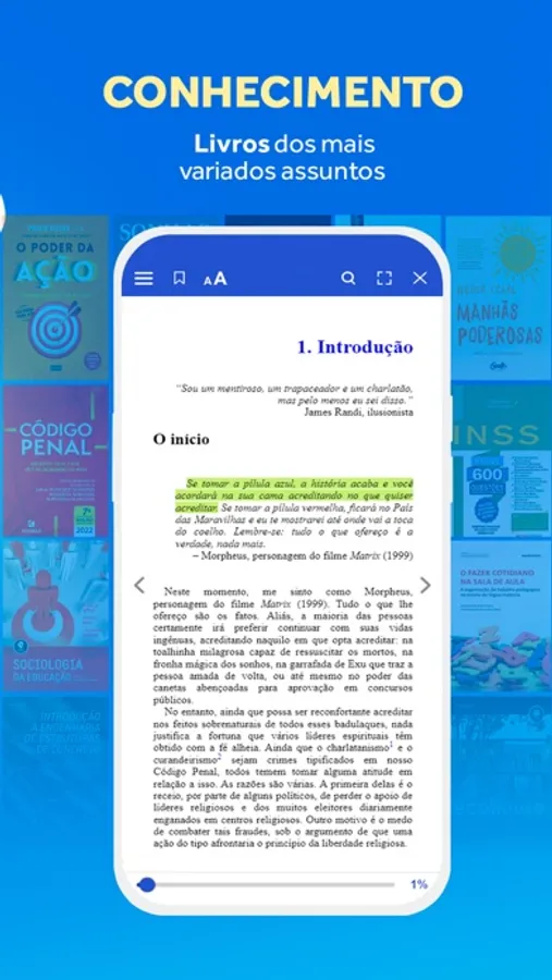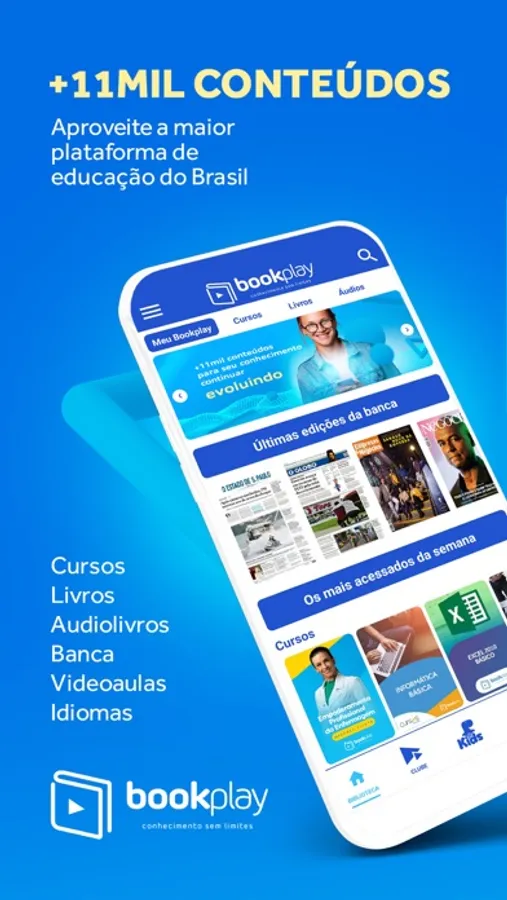 O Bookplay é uma plataforma com conteúdo educacional, informativo e de entretenimento. São mais de 50.000 livros, 4.000 audiolivros, 2.000 cursos online, videoaulas, revistas, jornais, curso de inglês e espanhol!
