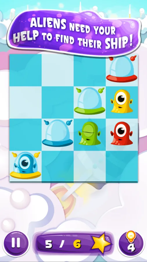 Shuttle Shuffle is a puzzle game where aliens, scattered after a chaotic landing, have to find their shuttle back.