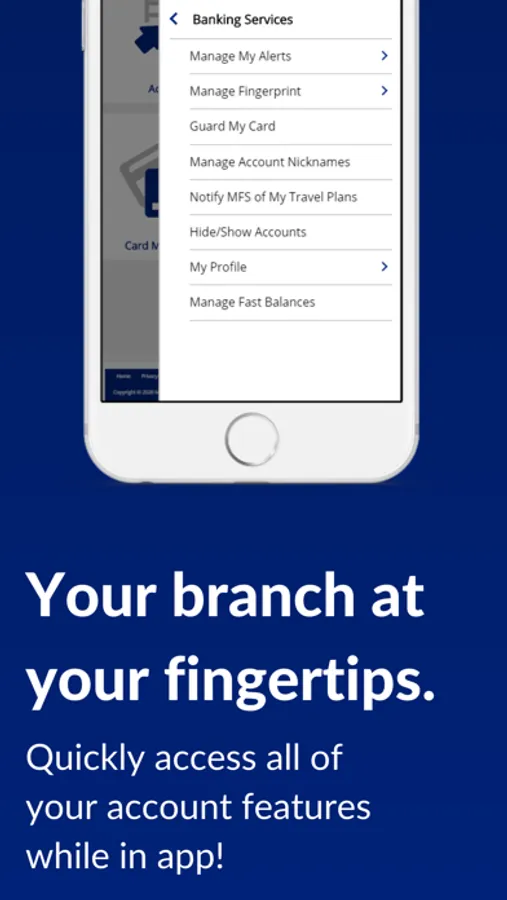- Find nearby branches and ATMs by searching by zip code or GPS.