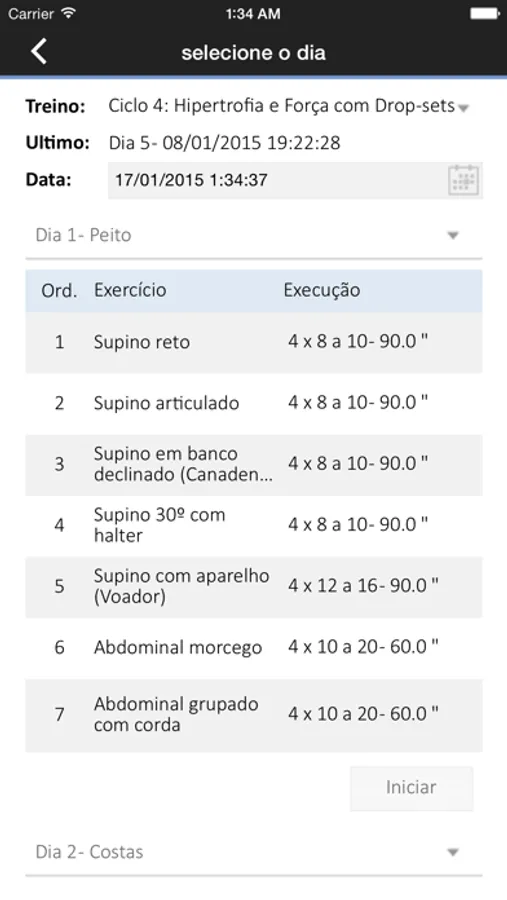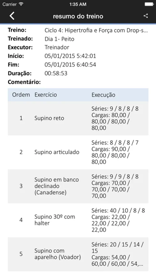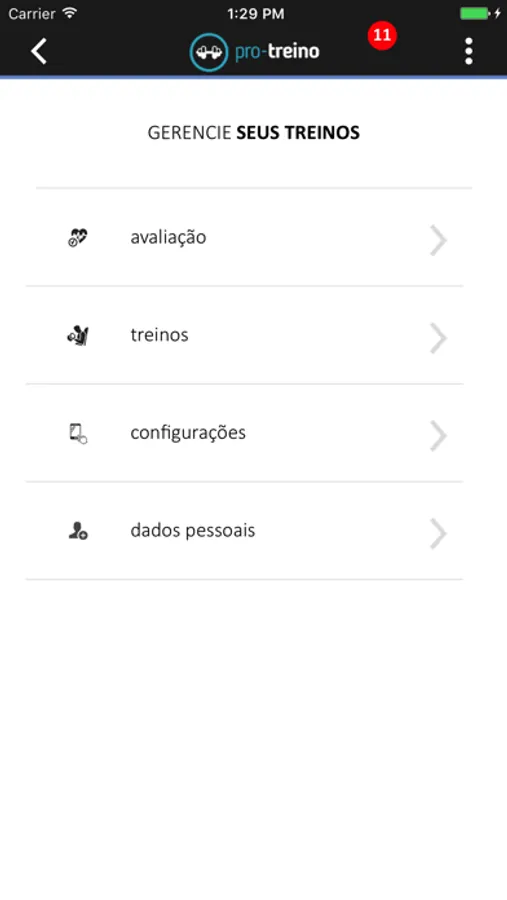 - Histórico de treinos realizados;