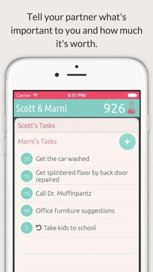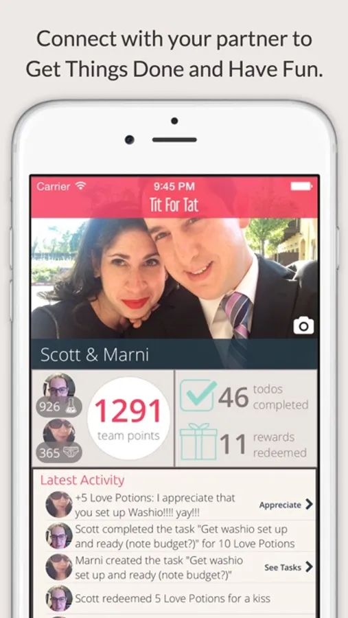 Sometimes relationships get bogged down in all the logistics and there's no room left for romance. For most couples, logistics and romance are at odds, but they don't have to be. With Tit for Tat, you share a To Do list with points tied to each item. You get to say to your partner how much it's worth to you for them to pick up the dry cleaning, or mow the lawn.