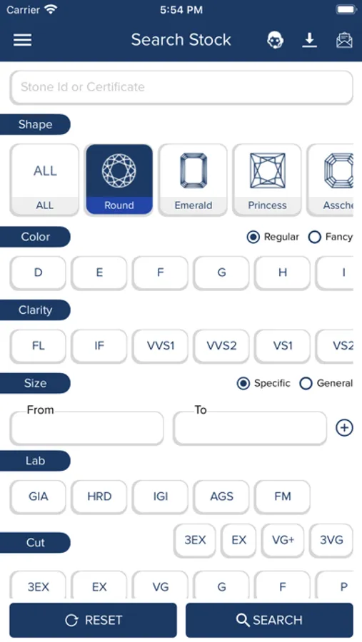 Its design is intuitive and the numerous user-friendly functionality offered allow certified singles stones to be searched, viewed from top or bottom, compared, added to cart and ordered.