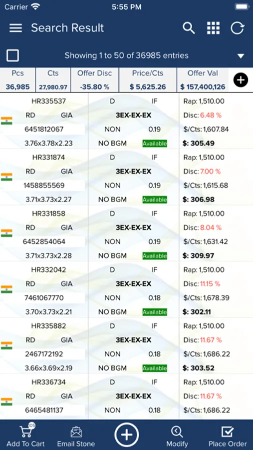 This free application enables you to get real-time access to the Sunrise Diamonds ltd.'s inventory of certified diamonds.