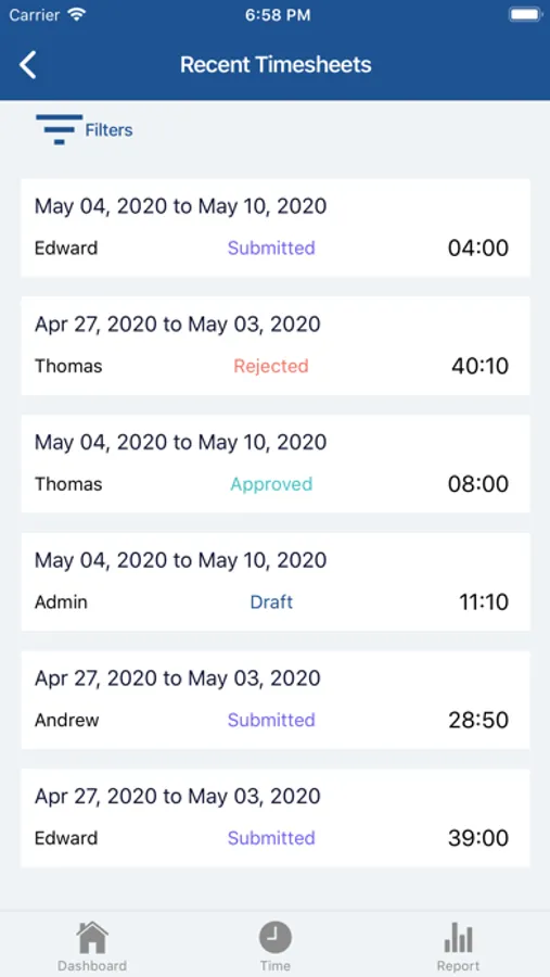 Time is entered on a daily basis, reported weekly or bimonthly, and then approved by a supervisor or manager. With a swipe of a finger, management can see how much time has been spent on a project, how much time an employee has logged on their timesheet, and more!