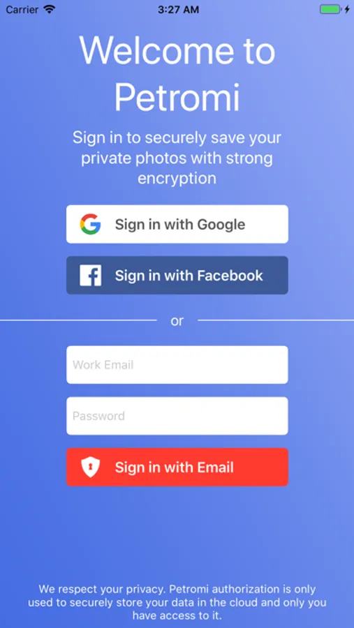 Petromi is an application for safe and secure storage of your photos and screen shots.
