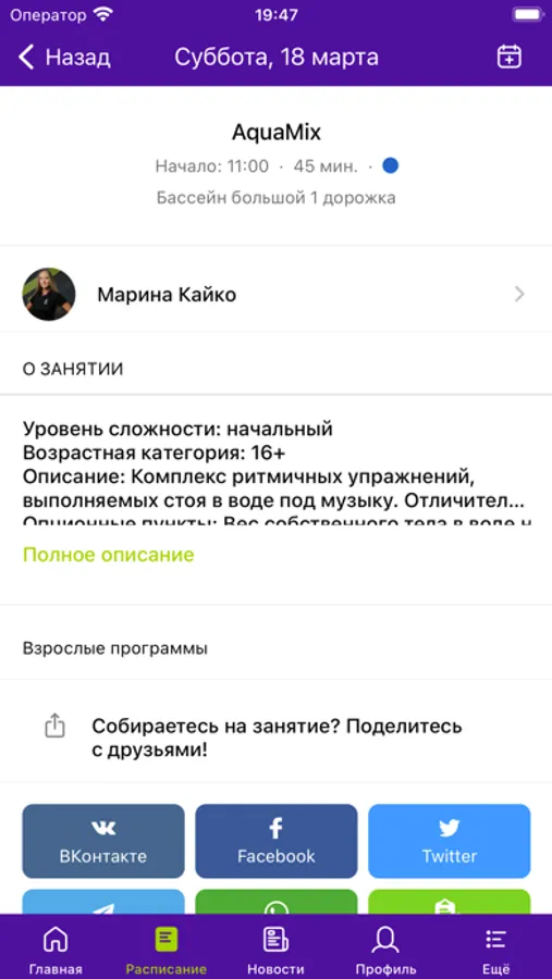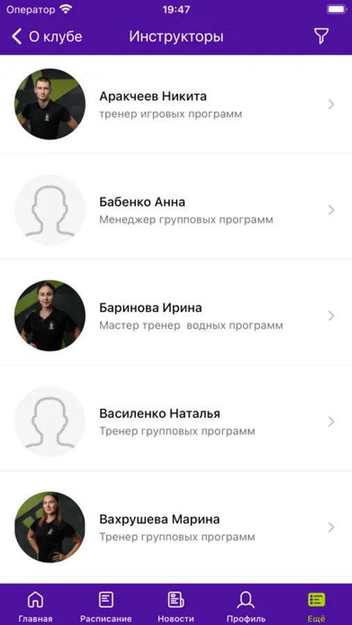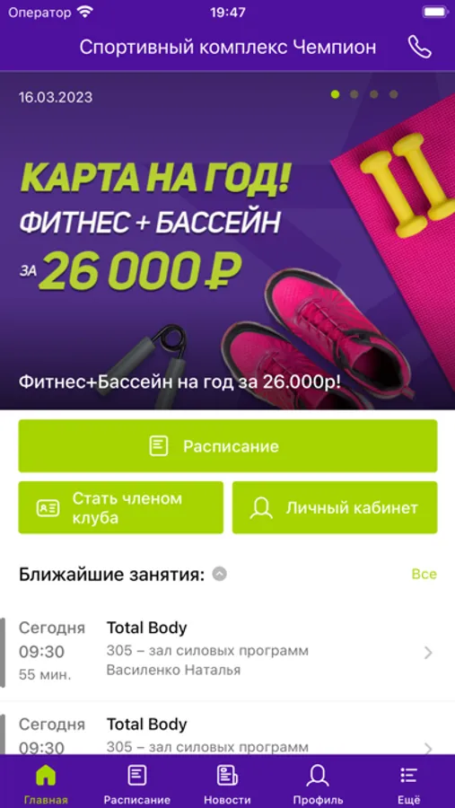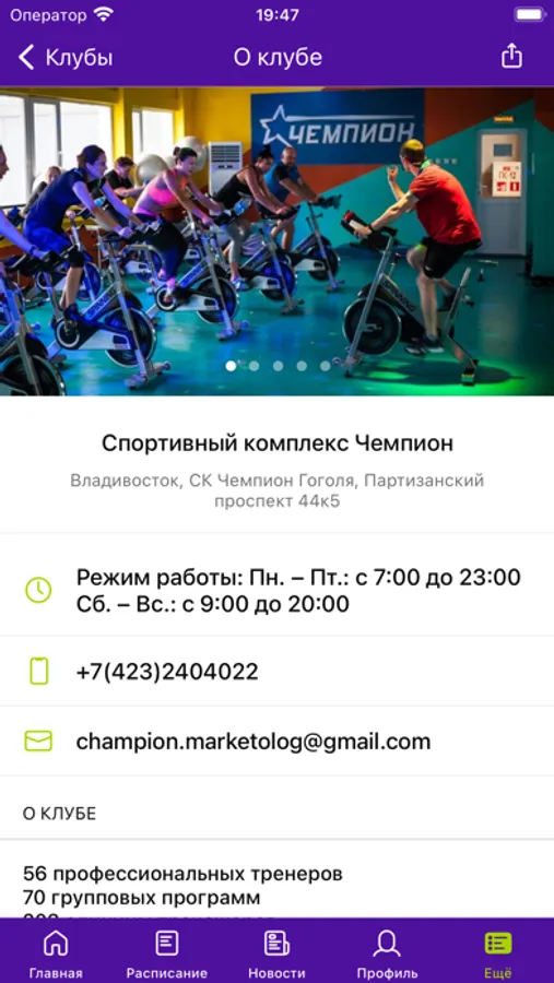 С помощью приложения вы можете следить за новостями, расписанием клубов, оперативно получать информацию об изменениях в расписании и специальных предложениях.