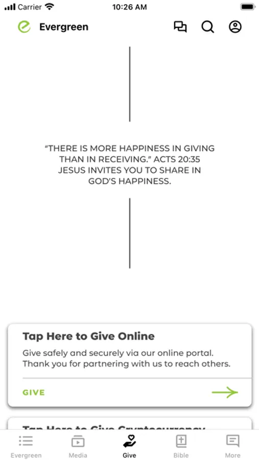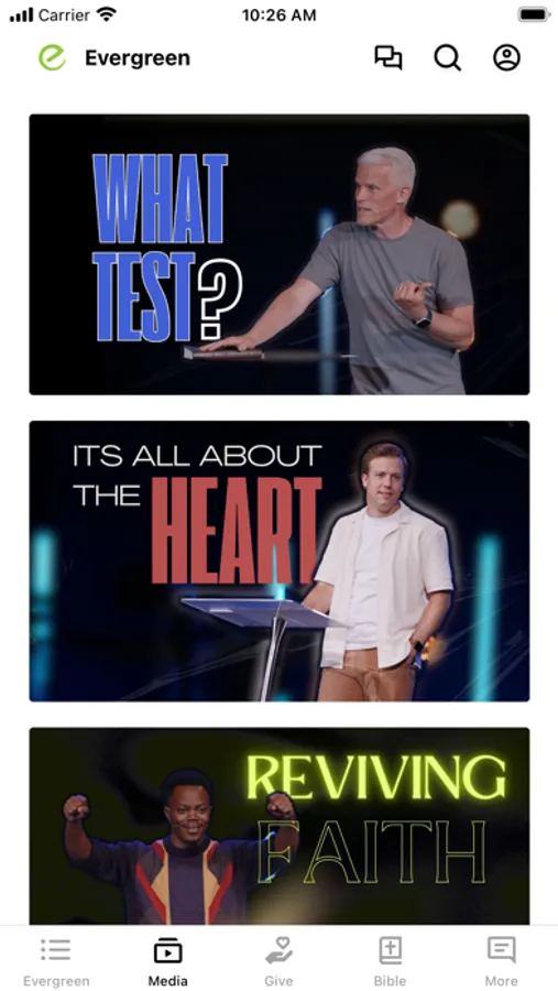 Evergreen Church is all about Jesus changing lives through you. To help people change lives this app will include, live services, previous messages, a full ESV Bible, a Bible reading plan, and you can give right on your phone or tablet. After you have experienced and enjoyed content, you can share it with your friends via Twitter, Facebook, or email.