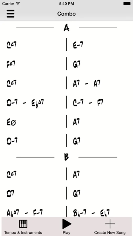 Combo is like having a jazz combo to practice with on your device. It automatically generates music and chord charts for you to practice with.