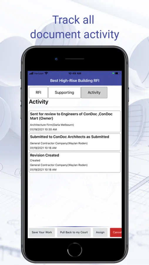 ConDoc is construction documentation simplified. An easy to use, easy to train platform that provides companies a solution for managing document workflow on construction projects of all types. Owners, General Contractors, Subcontractors, and Design Teams rely on ConDoc to help streamline communication, eliminate rework, and ensure everyone is building from the most current set of information. Accessible on any device, field to office, on or offline.