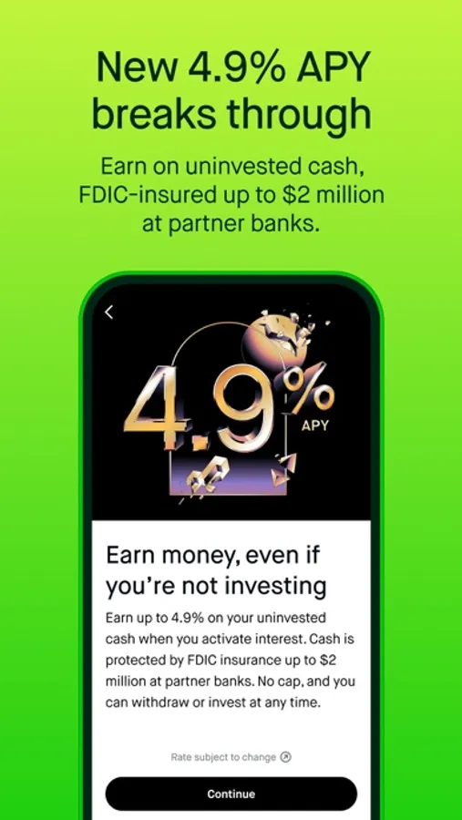 - Earn 4.9% on your uninvested cash. Terms apply.**