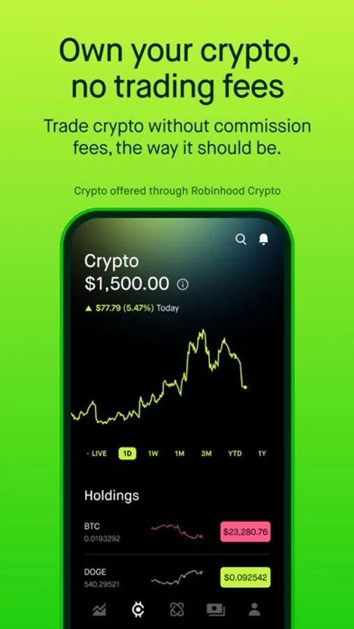 Robinhood helps you run your money your way. Trade stocks, options, ETFs, with Robinhood Financial & crypto with Robinhood Crypto, all with zero commission fees. Other fees may apply*.