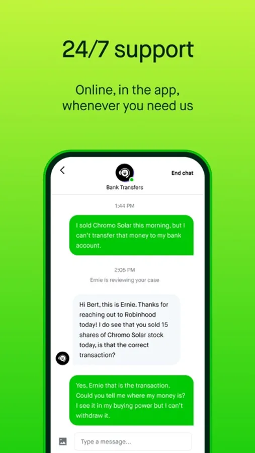 - Chat with a Robinhood associate for any questions you have.