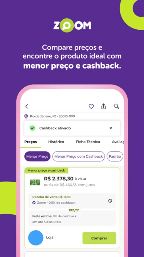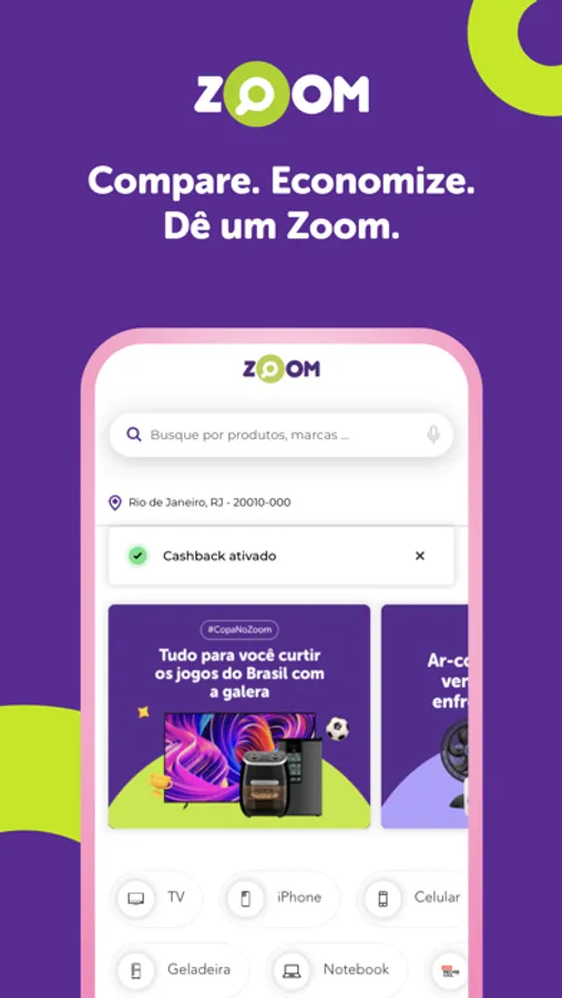 Na hora de comprar online, já sabe: use o app do Zoom para encontrar as melhores ofertas e descontos, comparar preços e economizar de verdade. Baixe o app!