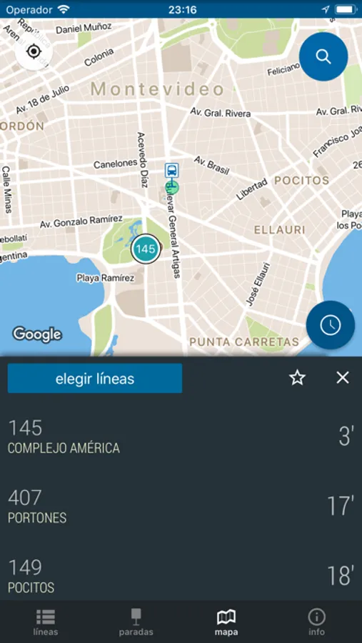 • buscar que líneas de ómnibus te sirven para llegar de un lugar a otro y ver sus recorridos