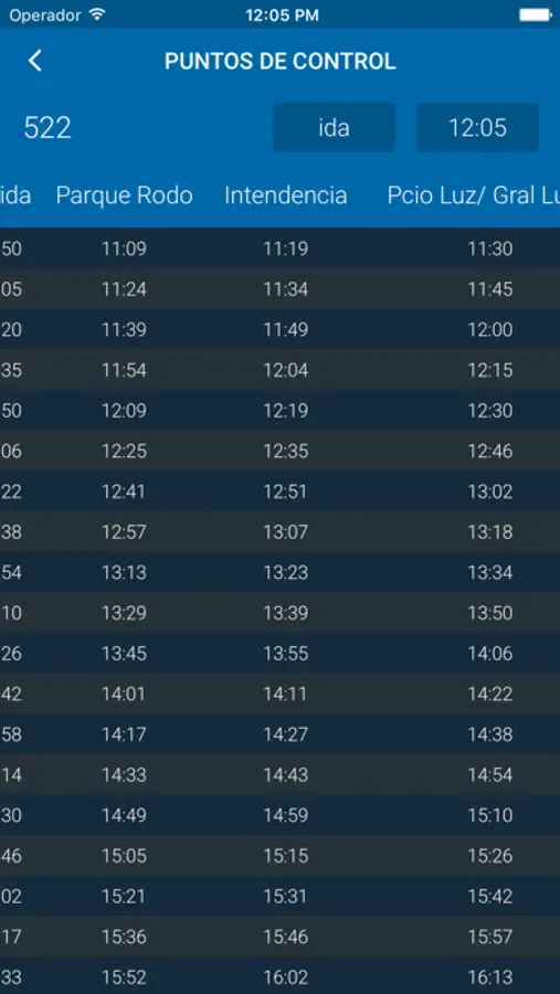 • ver horarios, por puntos de control y por paradas en tiempo real