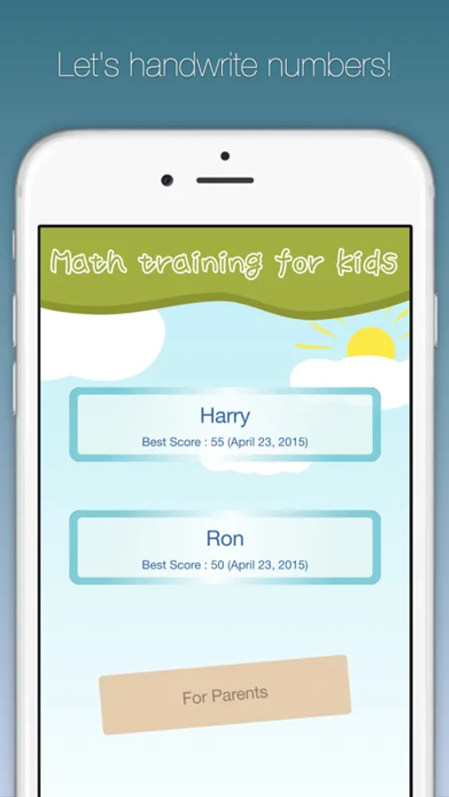 Kids enter numbers by hand-writing.