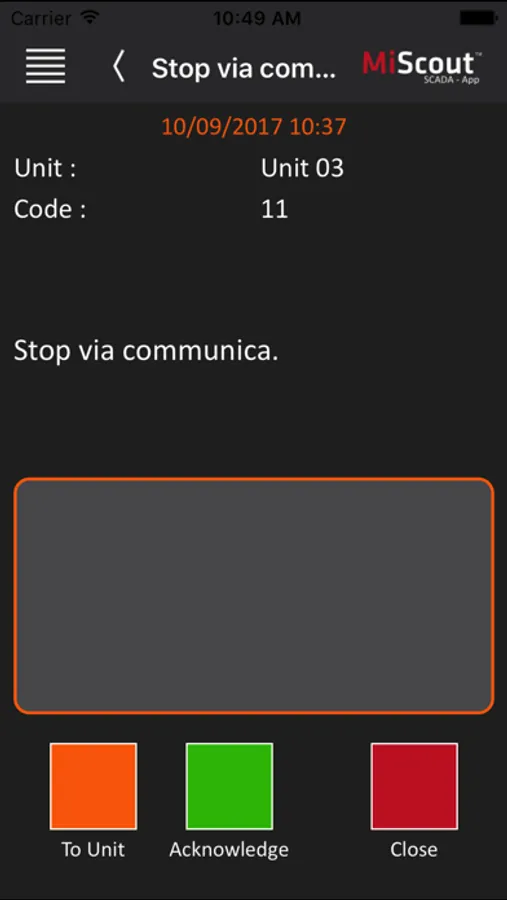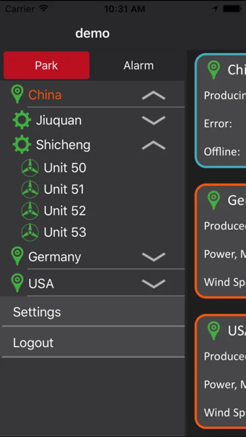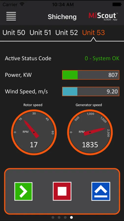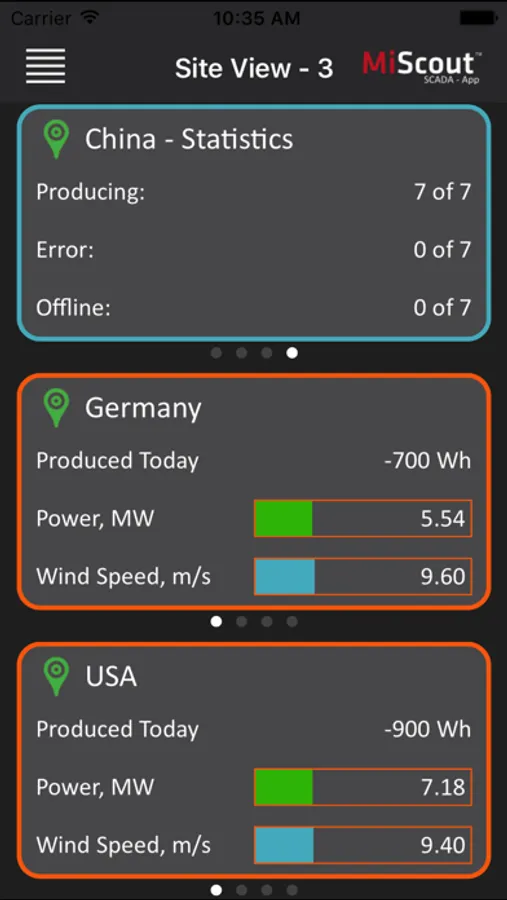 MiScout SCADA - App is an extension to MiScout Web SCADA solution enabling to connect to turbines or wind parks and monitor production, availability, alarms, weather conditions and more. It allows to instantly be online with wind turbines thus reacting to alarms and changing conditions.
