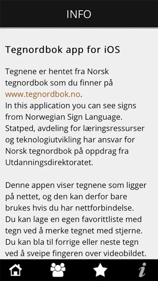 Denne appen viser tegnene som ligger på nettet, og den kan derfor bare brukes hvis du har nettforbindelse.
