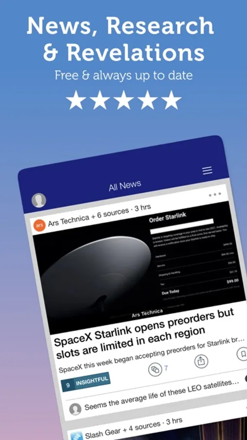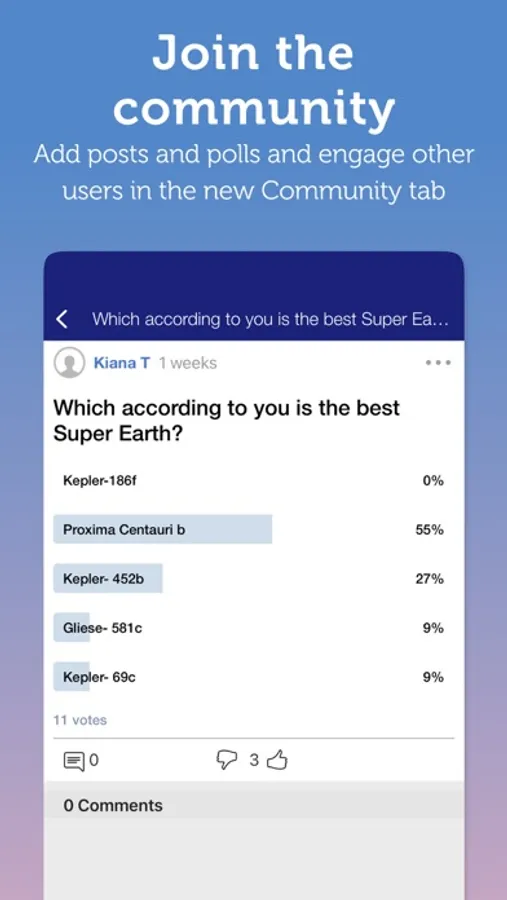 Join a community of space lovers! An in app commenting system, article tagging, reputation points and badges!