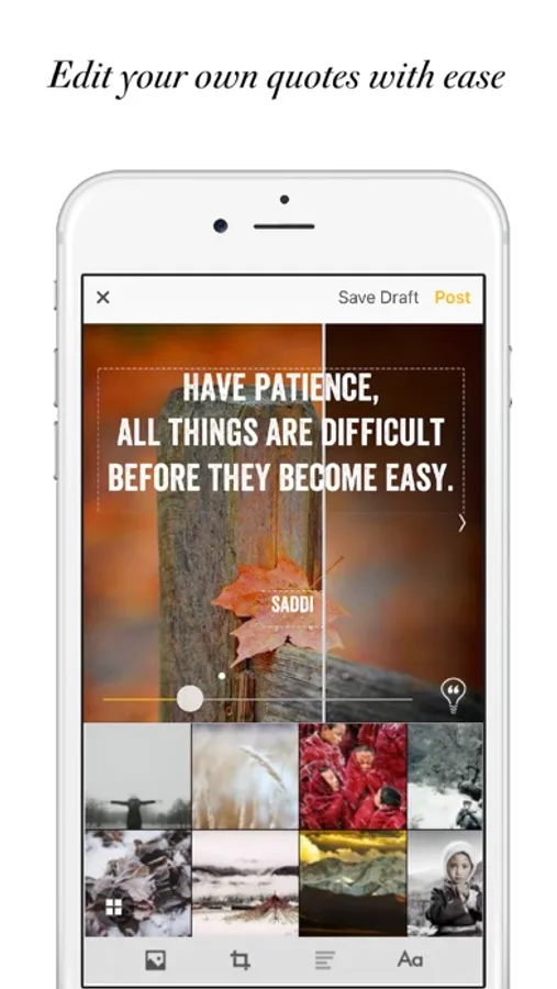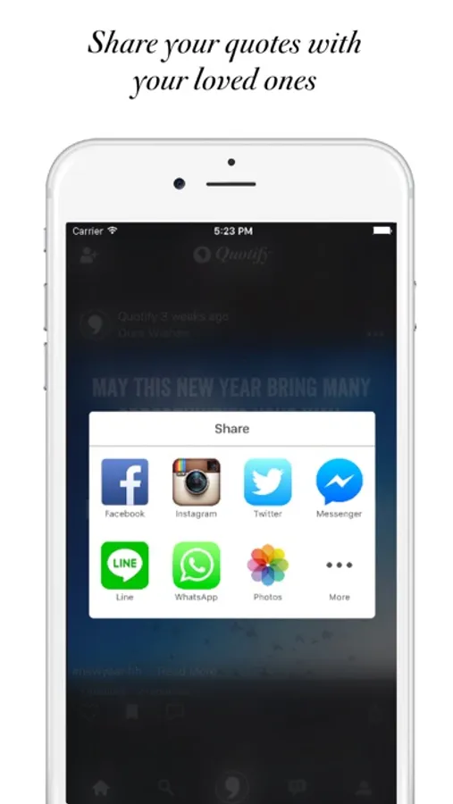 • Share your words with your family and friends within Quotify or via Facebook, Instagram, Twitter, etc.