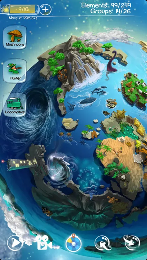 ALL ages puzzle game. Mix and match different combinations of fire, earth, wind and air to create an entire universe! As you create each element watch your world come alive as each element animates on your planet. The new “Planet” mode offers a challenging way to create a universe of your dreams.