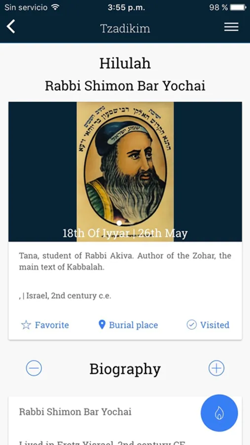 • Learn about them, know their burial place, share information and pictures you may have about them, add them to your favorite list and mark the Tzadikim you have visited.