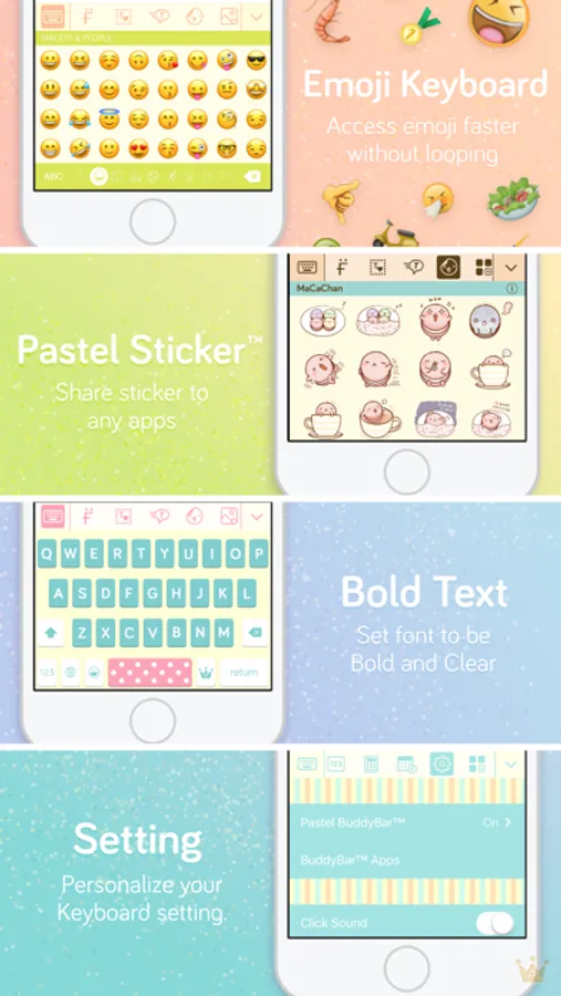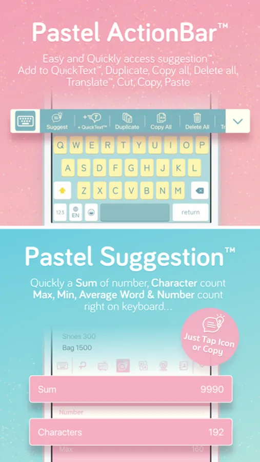 Pastel BuddyBar™ with word autocorrect, emoji suggestion, Symbols
