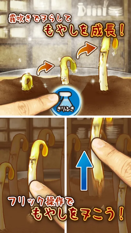 ・もやしの収穫で手に入れたおかねで施設を強化!