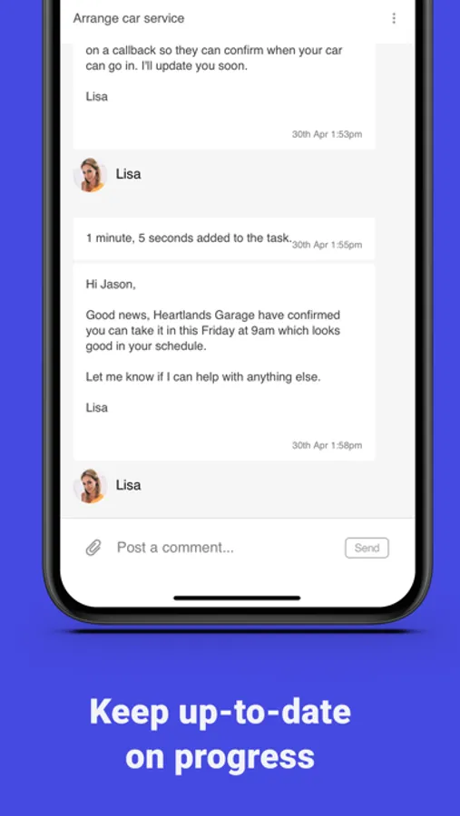 This Virtual Assistant app is designed to make it easy to get things off your plate - and connects you with your Virtual Assistant in absolute harmony.