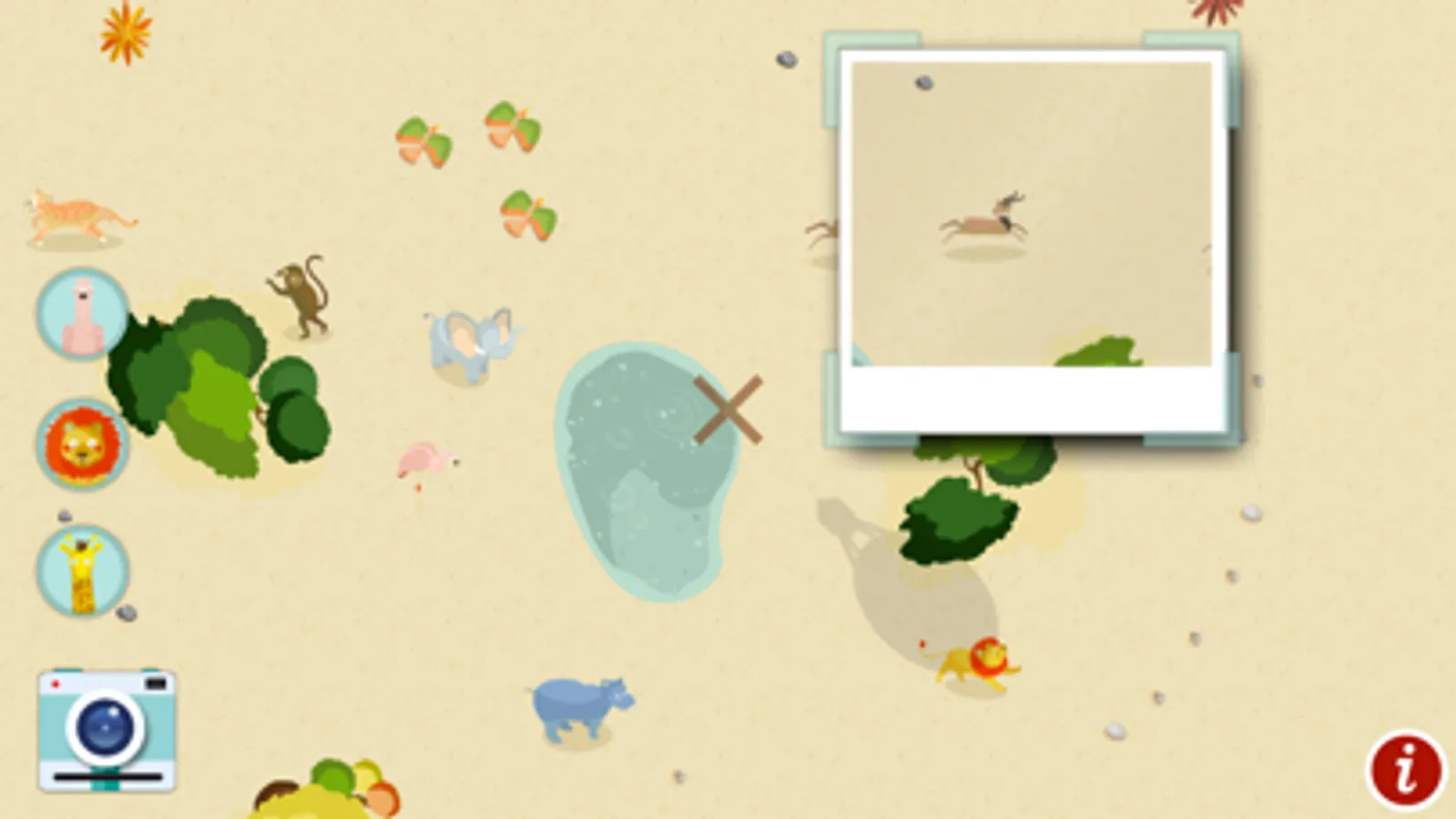 Dans ce jeu vous allez pouvoir vous promener au dessus de la savane et photographier les animaux demandés. Cette application vient en complément du livre « le safari en ballon » de la collection Zéphyr (le ballon en papier est fourni avec livre).