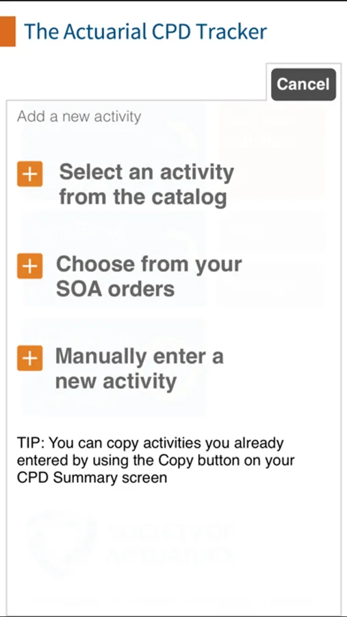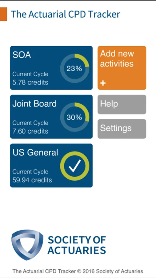 The SOA CPD Tracker is a powerful tool to help actuaries track Continuing Professional Development (CPD) credits. The app comes preloaded with professional development offerings from multiple actuarial organizations and supports various standard requirements including those for SOA, Enrolled Actuaries (EA), U.S. Standard, and others.