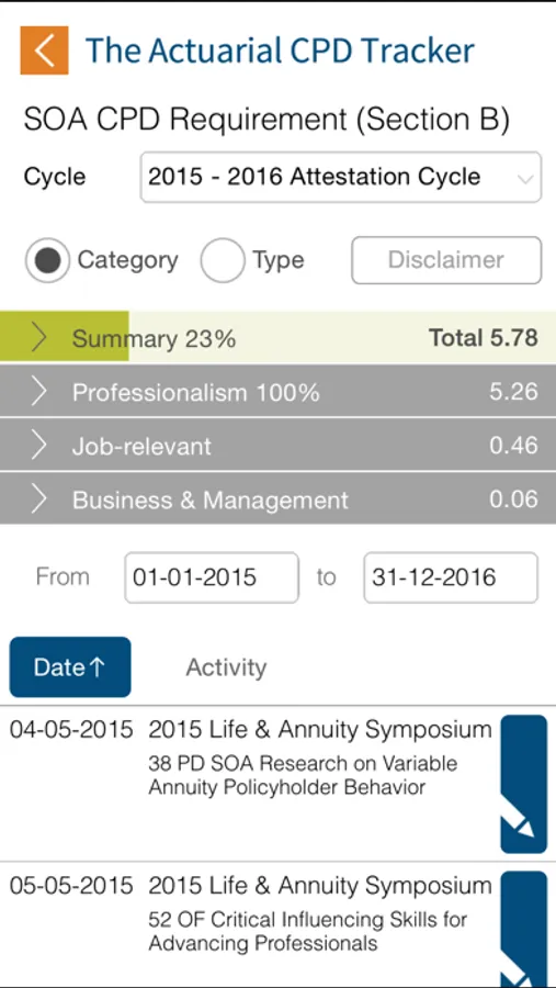 - Select CPD activities from a catalog of actuarial offerings from multiple organizations and from user-submitted activities