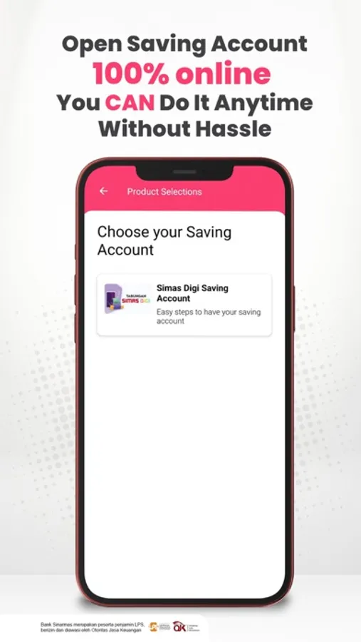 No need to visit bank, open your saving account 100% online through your smartphone. You just need to download SimobiPlus app, take a selfie, and your saving account is ready.